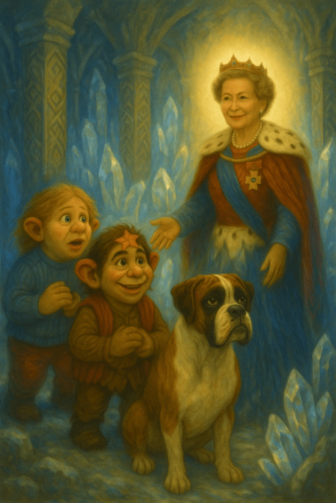 «Dronning Sonja bar kronen med hĂ„p. Da hĂ„pet brast, skjulte hun delene for Ă„ redde fremtiden. En del ble gitt til vinden. En til fjellet. En til hjertet.«